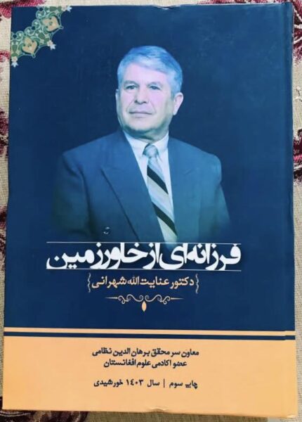 این اثر که «فرزانهای از خاورزمین» عنوان دارد و به پژوهش پیرامون شناختنامه، احوال و کارنامههای علمی و فرهنگی محترم پروفیسور دکتور عنایتالله شهرانی یکی از فرهنگیان شناختهشدۀ کشور اختصاص دارد؛ از سوی پژوهشگر جوان و پرتلاش همدیارم معاون سرمحقق برهانالدین نظامی عضو اکادمی علوم افغانستان تألیف شده است.